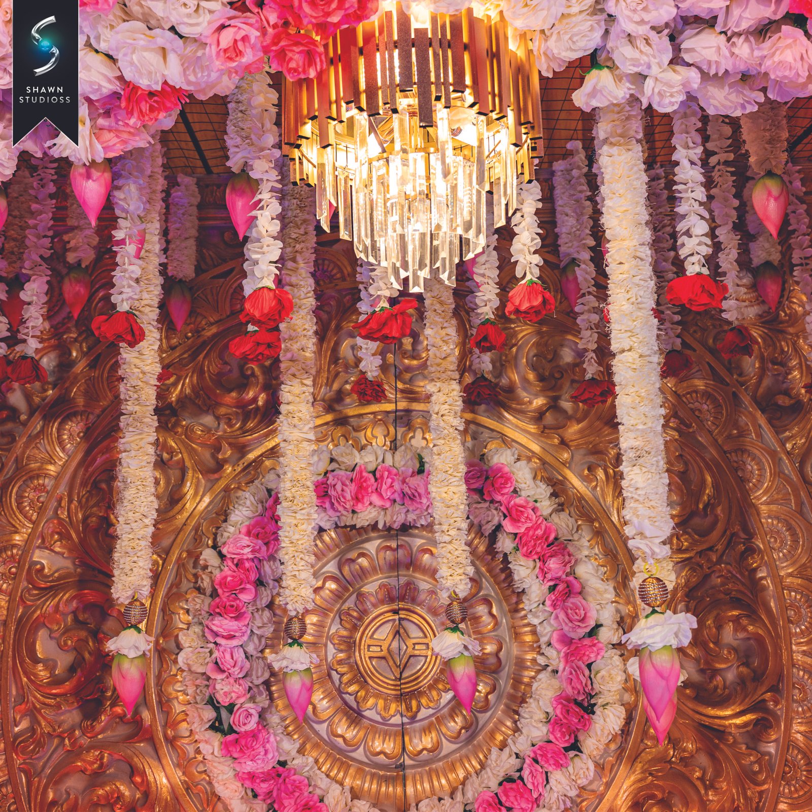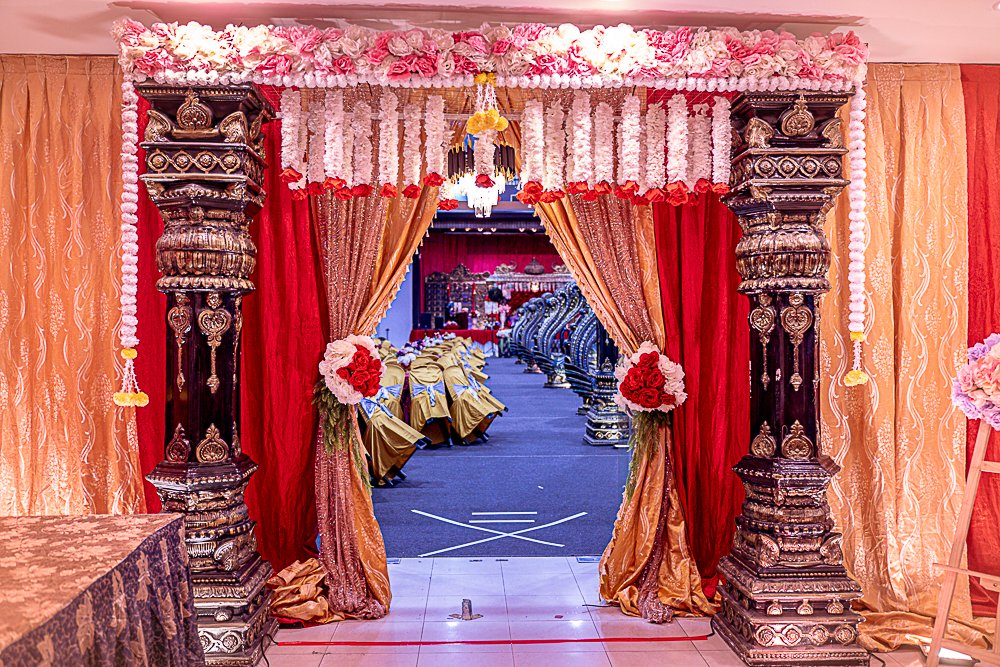 • Statement Arches: From towering floral arches to carved styrofoam structures resembling temple gates or castle doors, we create an entrance that demands attention.