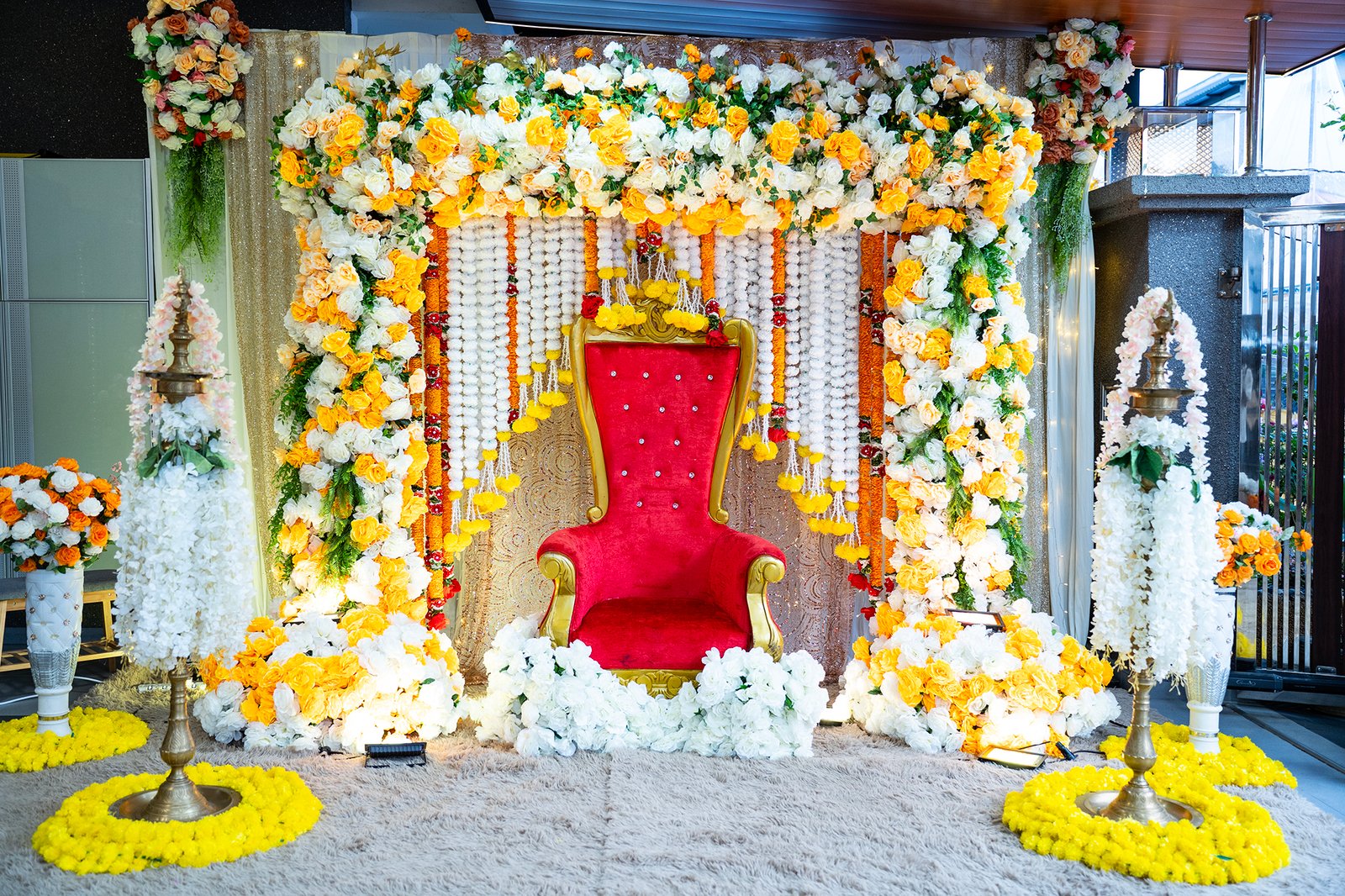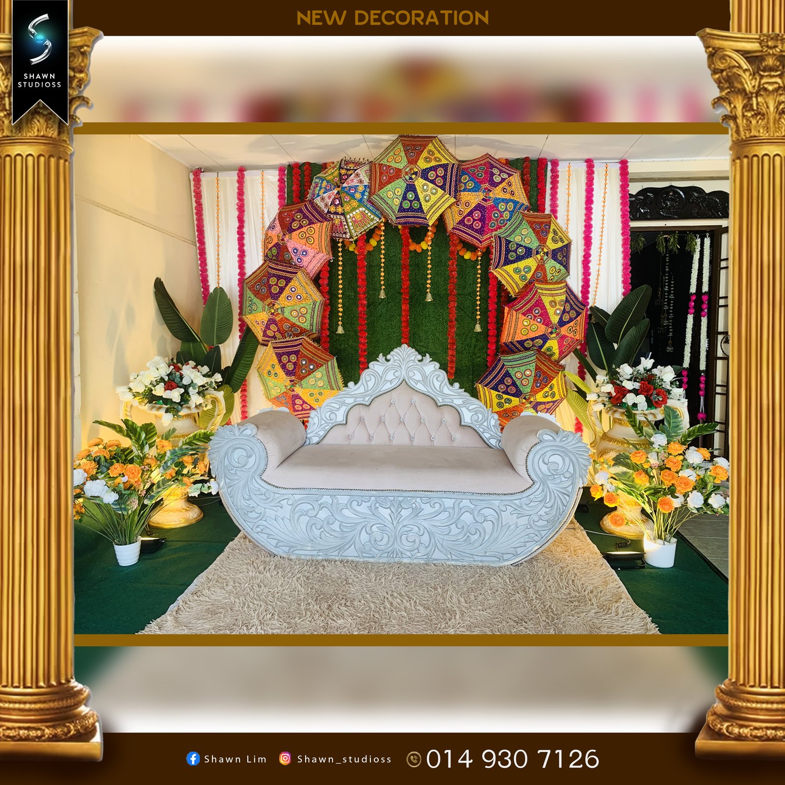 • Furniture: Complete with matching Havans (fire pits), royal chairs for the couple, and low seating for the parents and priests.