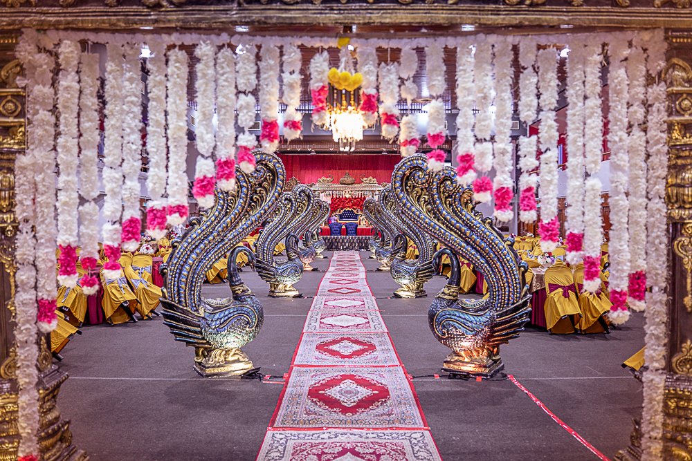 • Walkway Decor: We line the aisle with matching pillars, floral pedestals, red carpets, or mirrored walkways to guide your guests (and your grand entrance) towards the stage.